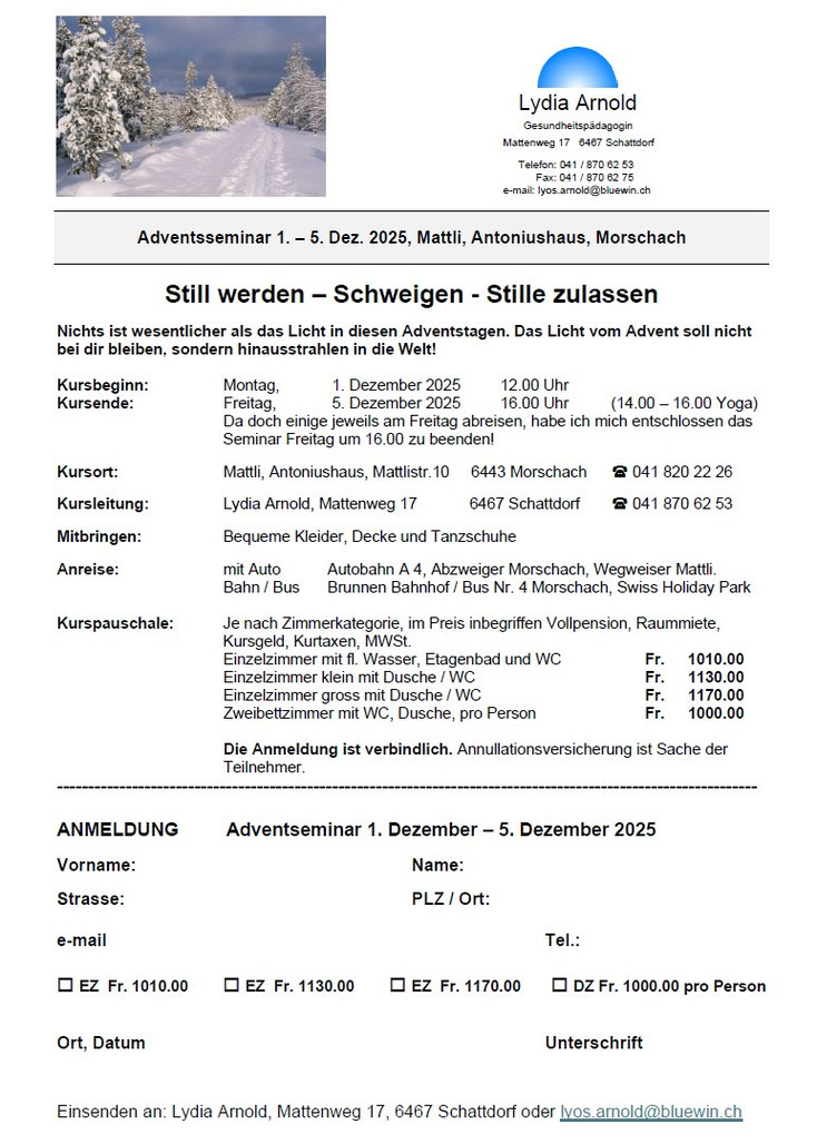 Anmeldung zum Adventseminar 01.12. - 05.12.2025
